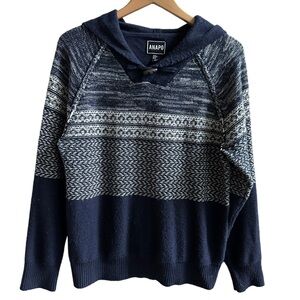 Anapo Womens Navy Blue Wool Blend Knit Hoodie Long Sleeve Sweater Size M
