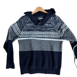 Anapo Womens Navy Blue Wool Blend Knit Hoodie Long Sleeve Sweater Size M