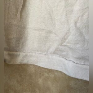 Casual white t-shirt with a bold graphic design. Perfect for everyday wear. Great vintage look. In heavily used vintage condition with no major holes but plenty of stains.