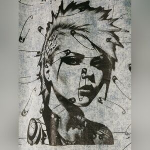 Unique Anarchy Punkrocker Design Print on back of a Jean Style Button Up, used item little slight stain on the left sleeve but still Looks Great, picture is shown. this was my first print for this design that I created. unisex style ๐งท๐จโ๐ฌ๐ฏ๐ฉโ๐ค