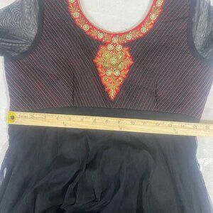 Anarkali Dress S/M Gold Embroidery Beaded Party Gown Indian Cosplay Dance