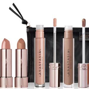Anastasia 5-Pc. Lip Essentials Set 2 Lipsticks 2 gloss, makeup bag NEW