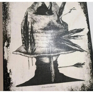 Anastasia Alexandrin Hat Series 6 Wood 11x14 Block Raven Girl Signed
