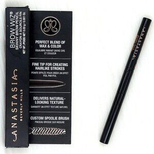 Brow Wiz by Anastasia Beverly Hills is an ultra-slim, retractable brow pencil with a unique formula ideal for outlining and detailing brows. The super-fine tip creates tiny hairlike strokes throughout the brow and in areas of sparseness while the spoolie blends product for a natural-looking finish.