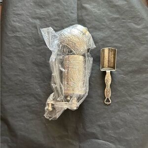 Anatolia Breeze spice grinder in a natural silver color. Features intricate designs