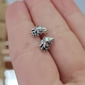 Anatomical hearts with a polished antiqued silver overlay finish; hypoallergenic posts.