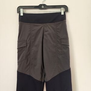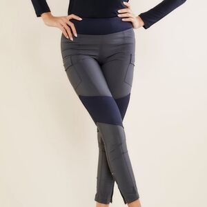 Make a statement in this luxe legging pant with cool contrast panels and side pockets. A shaped high waistband and our signature curve-hugging stretch, which is breathable with an allover slimming effect, combine comfort and style. In a city-chic color palette, it's ideal for travel to urban locales or updating your everyday look.