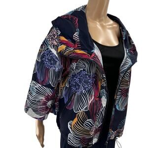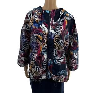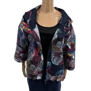 The cropped sleeves and cute silhouette of this jacket makes it a standout among all the traditional (and frankly boring) jackets out there. Of course this being Anatomie, it's also totally functional, with the needs of a traveler always top of mind. Detailed with secure zip pockets, a slightly oversized hood and bungees at bottom that can be adjusted how you like. Oversized fit. High collar with hood. Wide, elbow length sleeves. Length hits at high hip. Lightweight. Durable. Quick dry. UV Protection. Easy care. Polyester. Machine wash. AA3710P. In great preowned condition. Shown on the model in a different print to display fit.