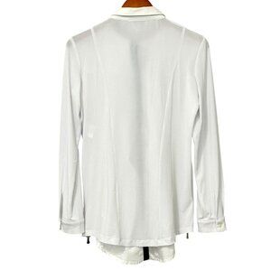 Anatomie Button Down Shirt White Mixed Fabric Zip Sides Long Slv Stretchy Size S