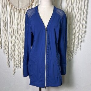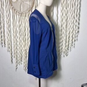 Anatomie Mokai Stretch Woven Mesh Zip Cardigan in Blue Size Large