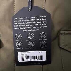 Anatomie Nariah Hooded Travel Hybrid Utility Cargo Jacket Size Large Moss Green Belted. New with tag, no flaws. Measurements are approximates only. Flat lay measurements: chest 26” Length 27” front from shoulder to hem Sleeve- pit to hem 17.5”