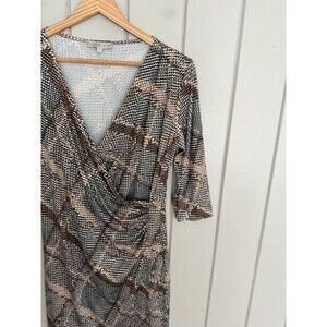 Anatomie Printed Marine Dress S Small Reptile Plaid Green Brown Faux Wrap 3/4