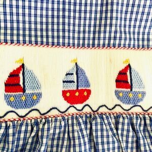 Anavini Blue Checked Smocked Sailboat Dress Blue Red 2T