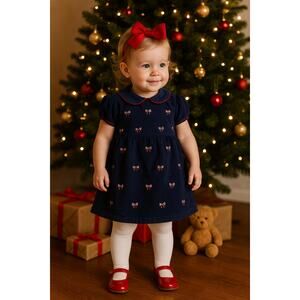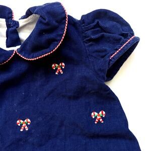 Anavini Christmas dress, Anavini toddler dress, Anavini corduroy dress, candy cane embroidered dress, holiday toddler dress, Christmas toddler outfit, smocked Christmas dress, baby girl Christmas dress, navy holiday dress, boutique toddler Christmas outfit, heirloom holiday dress, Peter Pan collar dress, embroidered corduroy dress, festive toddler clothing, traditional Christmas outfit, red and navy Christmas style