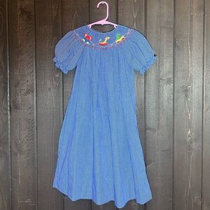 Anavini Hand Smocked Blue Checkered Dress Long Girls Sz 5 Zoo Animals EUC. 100% Cotton. No rips. No stains. Elephant Giraffe Hippopotamus. Short sleeve 2-buttons up the back. Shoulder to hem 29.5”.