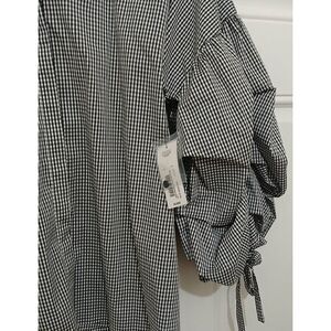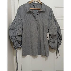 Ana womens 2xl puffer sleeve black white gingham plaid shirt top