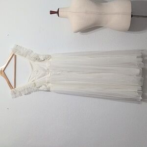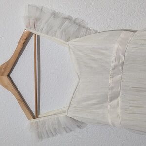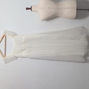 Anaya With Love Tulle Frill Sleeve Mid maxi Maternity Dress Size 8. Flattering sweetheart neckline and empire waist that truly can grow with you. Perfect for baby shower or wedding or honeymoon. Anaya with Love utilizes eco-friendly practices. Midaxi length makes it versatile for petite or tall silhouettes! Pre-owned still in excellent condition. There are two small marks on the back of the straps where I believe the original owner marked in order to add veil or cape like fabric to the back but I'm not sure. that has been removed but the marks are still there.