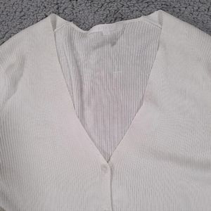 Anayi Womens Small Top Knit V Neck Long Sleeve Stretch White Ivory 38 Button