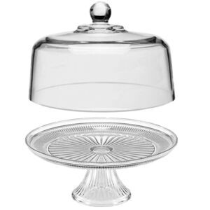INCLUDES: This glass serveware set contains (1) 13-inch cake plate on stand and (1) 11.5-inch dome. Display what you bake in a dish that's worthy of it.