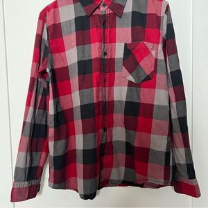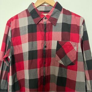 Anchor Blue Shirt Mens Medium Red Gray Plaid Button Up Long Sleeve Cotton
