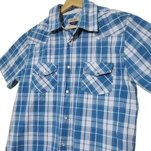 Anchor Blue | Short Sleeve Blue Plaid Snap Front Shirt