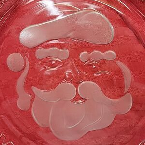 Add a festive touch to your holiday decor with this 12" glass Christmas Santa platter from Anchor Hocking. The clear glass platter features a charming Santa Claus design, perfect for any Christmas occasion.