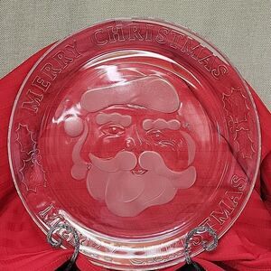 Anchor Hocking 12" Glass Merry Christmas Santa Platter, mug and letter to Santa