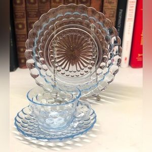Anchor Hocking 1950’s Glass Bubble Blue Desert Plate,Saucer & Tea/Coffee Cup