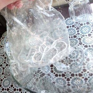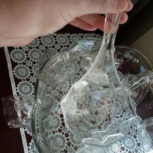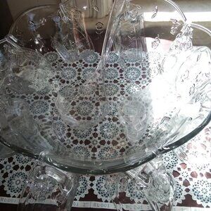 Vintage 1997 Anchor Hocking Savannah Punch Bowl Set. This set has never been used, is in perfect condition, and is still in the original box. Includes 1 7-quart punch bowl, 8 7oz. cups, 8 cup hooks, 1 ladle. Beautiful design on glass. This set is very elegant, and a nice addition to any gathering. The box has a little bit of wear.