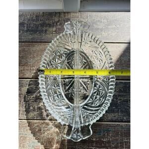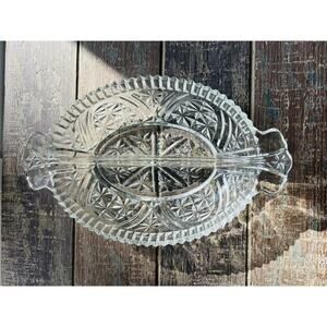 Anchor Hocking 2 Part Relish Dish Clear Divided Sides Clear Cut Glass Vintage