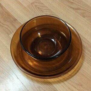 Anchor Hocking 6" Bowl Amber Brown #456 and 9" Pie Plate 460 Vintage