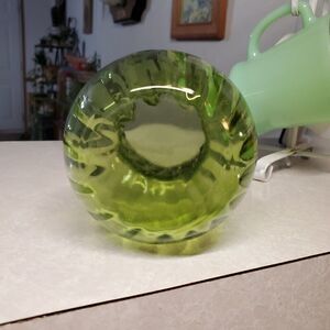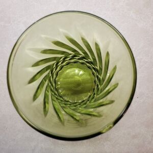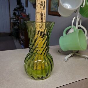 Anchor Hocking 6" Emerald Avocado Green Ribbed Swirl Flared Glass Vase Some water stains.