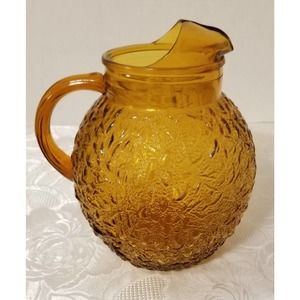 1960s Anchor Hocking Amber Glass 64oz Ball Pitcher And Four 16oz Tumblers. Excellent Vintage Condition.