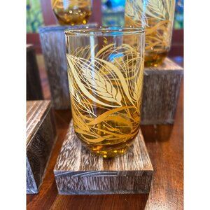 Anchor Hocking Amber Wheat Patterned Mid Century Juice Glasses.