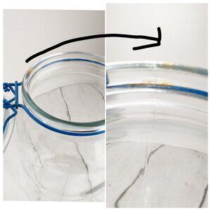 Gently used vintage condition. There is some rust on the glass from the bail, as well as bale wear /chipped paint near the toggle closure. Please see photos
