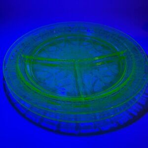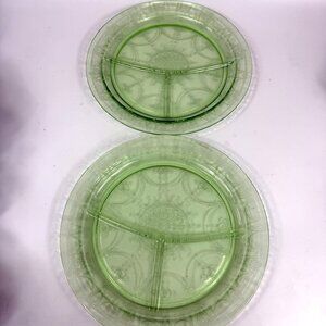 Anchor Hocking Cameo Uranium Green Divided Grill Plate 10 1/2 Inch Depression Gl