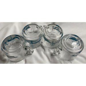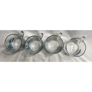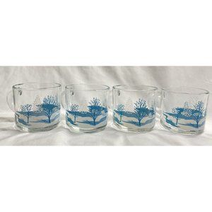 Anchor Hocking Clear Glass Coffee Tea Cups Mugs Winter Blue Scene Trees