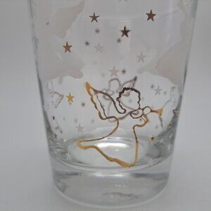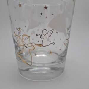 A versatile clear glass from Anchor Hocking featuring a charming gold and white angel and star design. Ideal for adding a whimsical touch to your table setting.