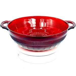 Anchor Hocking Coronation Ruby Red Depression Glass Serving Bowl w Handles 9.5”
