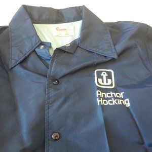 Anchor Hocking Employee Jacket VINTAGE Windbreaker Coat Rennoc USA Blue Small