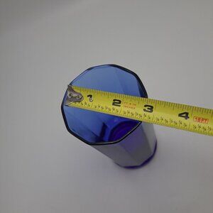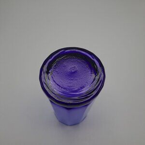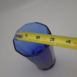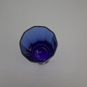 This cobalt blue glass tumbler by Anchor Hocking is designed for iced tea. Its vintage look adds elegance to your glassware collection.