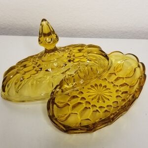 Anchor Hocking Fairfield Amber 70's Depression Glass 1/4lb Oval Butter Dish