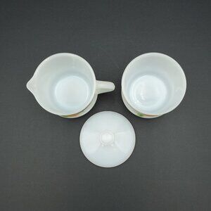Anchor Hocking Fire King Fruit Peach Gay Fad Creamer Sugar Bowl with Lid