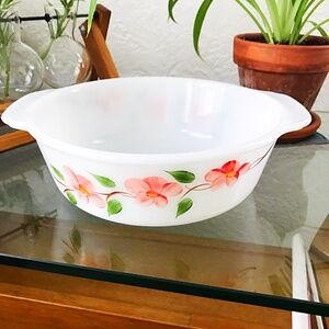 Anchor Hocking Fire King Gay Fad 1.5 Qt. Casserole Dish Dogwood Blossom 50s MCM