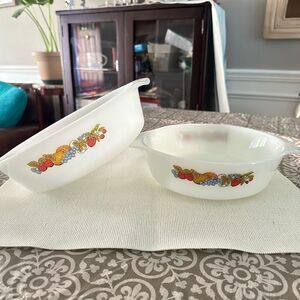 Anchor Hocking Fire King Oven Proof 2 Pc Round & Oval Dish Fruit Prints Vintage