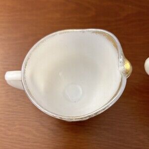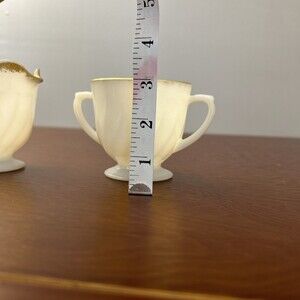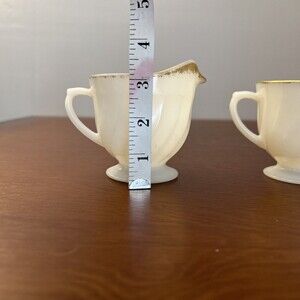 Anchor Hocking Fire King SWIRL GOLDEN ANNIVERSARY Creamer & Open Sugar Bowl. No chips, cracks, or crazing. Gold is worn.