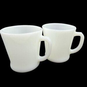 Anchor Hocking Fire King Ware White Milk Glass Coffee Mug Cup D Handle Cup x 2