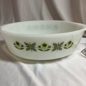 Anchor Hocking Fire King White and Green Bakeware Dish