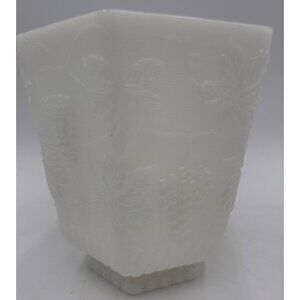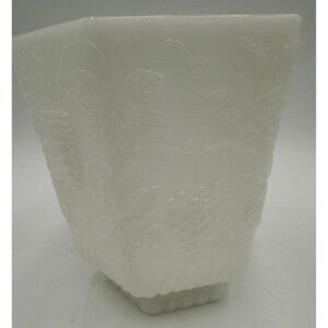 Vintage Anchor Hocking Fire-King Embossed Grape & Vine Pattern Milk Glass Hexagonal Vase