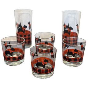 Each glass has 3 adorable Scottie dogs and red/black plaid